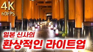 일본 신사의 환상적인 라이트업 .영원히 계속되는 토리이의 수에 압도당합니다.일본에서도 보기 드문 신사로 한번은 꼭 가봐야 할 장소입니다.